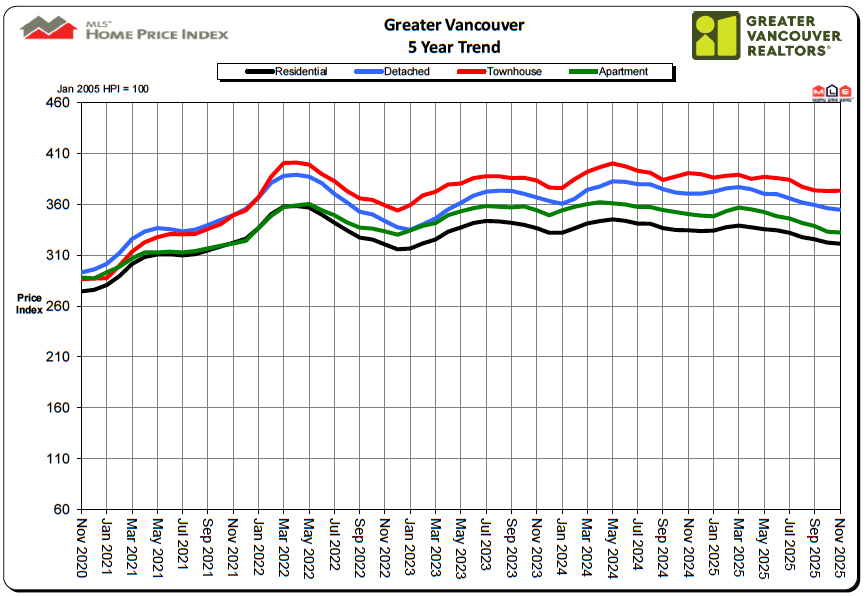"As the year draws to a close, the data continues telling a story of a market with many buyers patiently waiting and sellers adjusting to market conditions not seen in years. Inventory remains healthy, providing buyers ample choice, which, by contrast, is pushing sellers to accept that pricing must reflect this new reality. Buyers and sellers are striking deals when their expectations are aligned and reflective of the current market – not the market of years ago." - Andrew Lis, GVR director of economics and data analytics